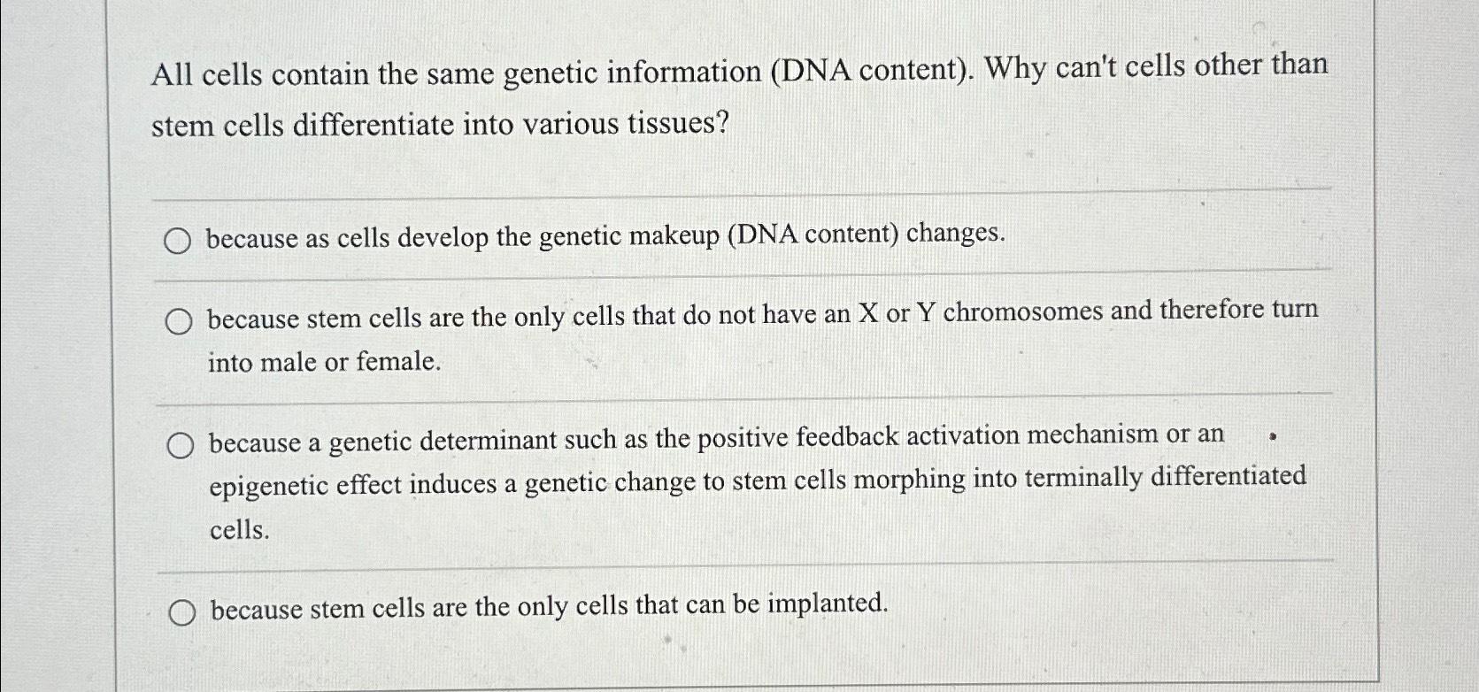 Solved All cells contain the same information (DNA