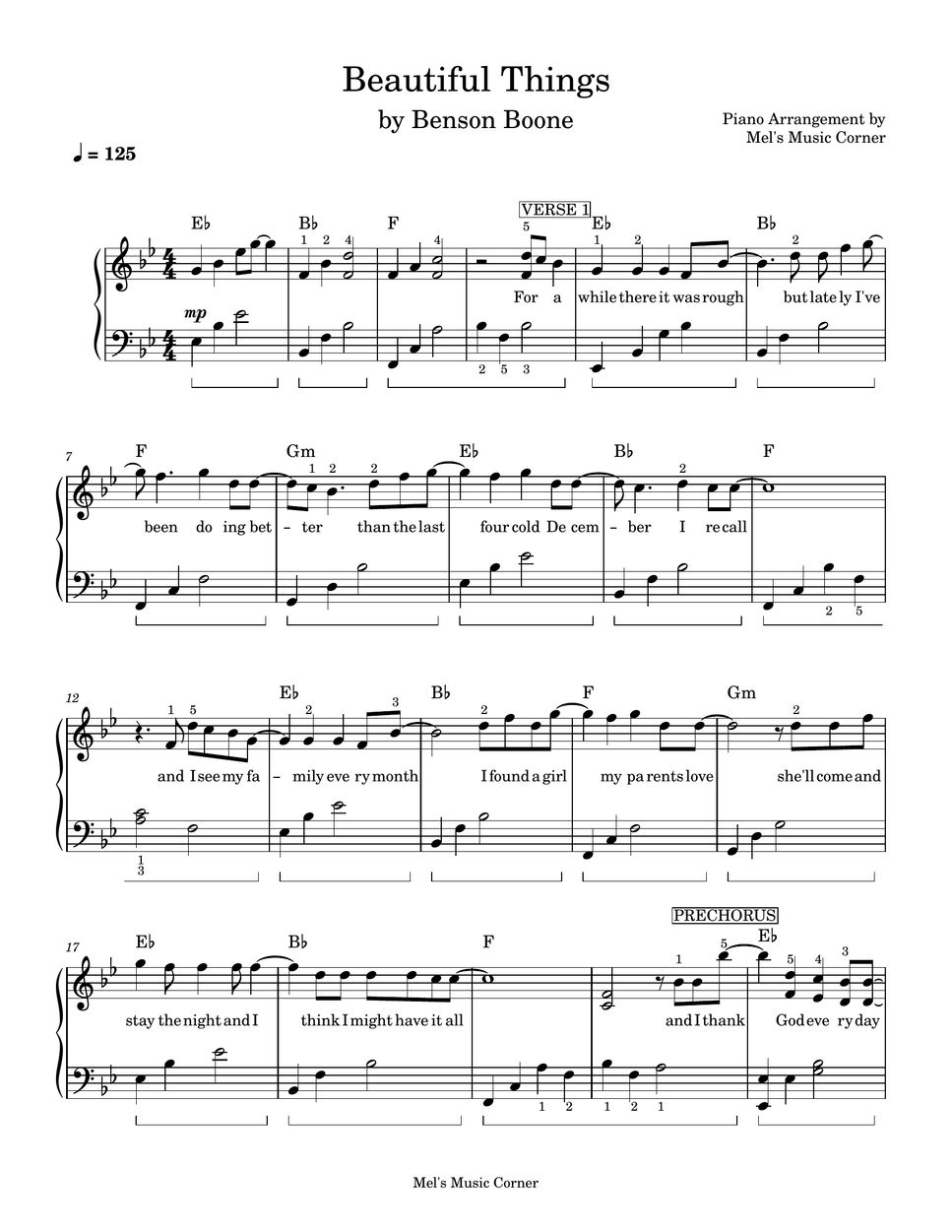 Browse our 19 arrangements of beautiful things. sheet music is available for piano, voice, guitar and 26 others with 10 scorings and 2 notations. Download benson boone beautiful things sheet music here. Printable sheet music arranged for easy piano.