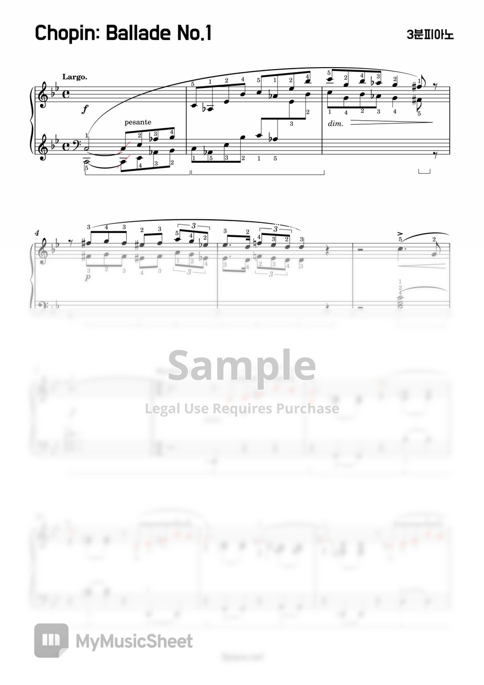 F.Chopin Ballade No.1 In G minor (Original 일반악보) Sheets by 3분피아노