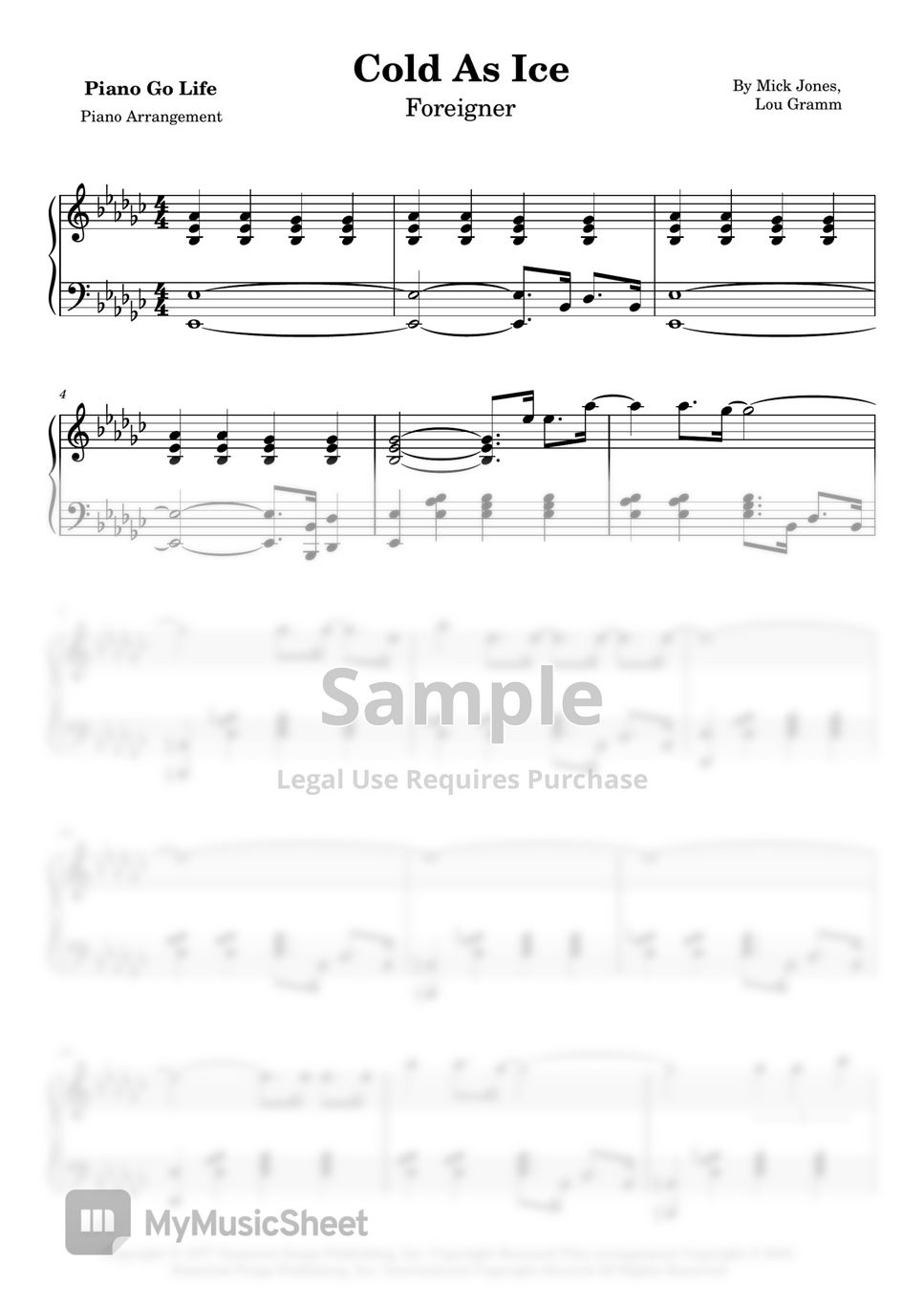 Foreigner Cold As Ice Sheets by Piano Go Life