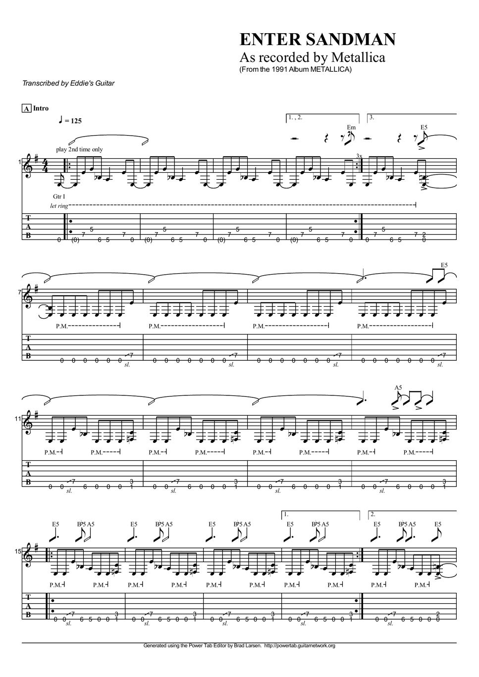 Enter Sandman by Metallica Sheet Music for Guitar Tab at Sheet Music Direct