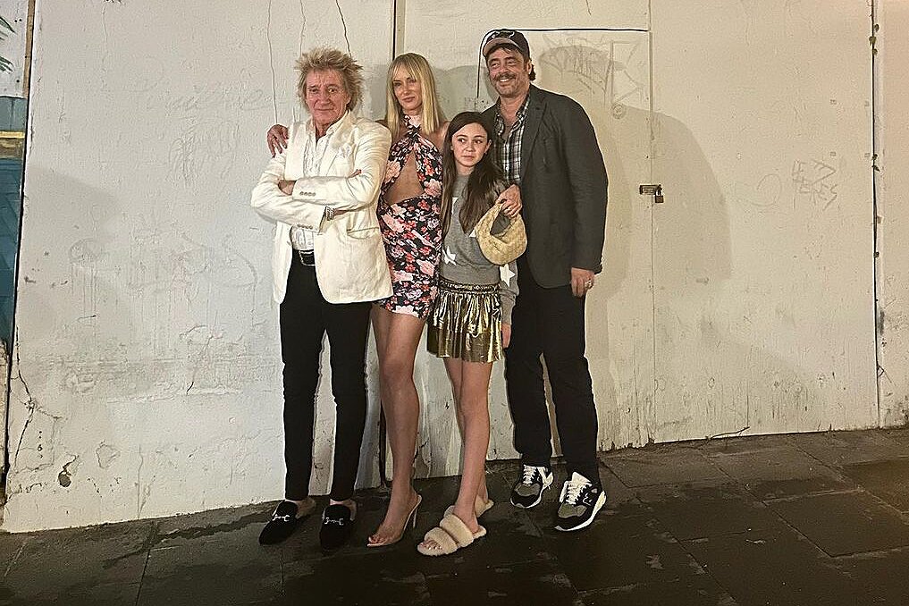 Kimberly Stewart, Benicio Del Toro, Daughter & Rod Stewart On Vacation