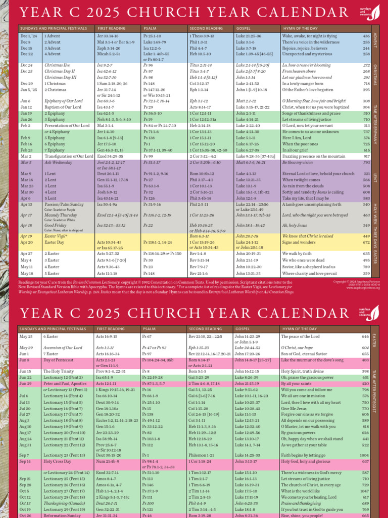 2025ChurchYearCalendar_Lectionary PDF Lent Christian Worship