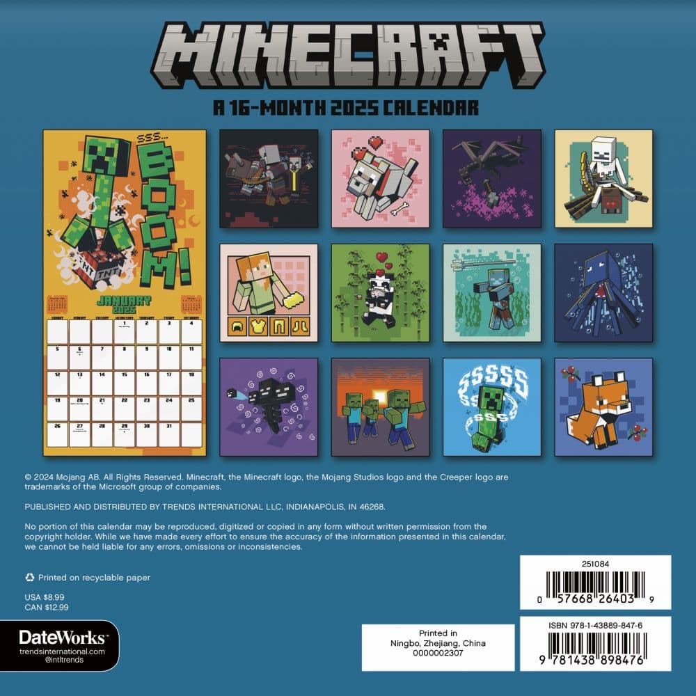 2025 Minecraft Mini Wall Calendar