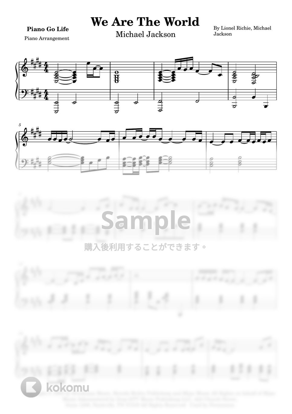 Michael Jackson We Are The World 楽譜 by Piano Go Life
