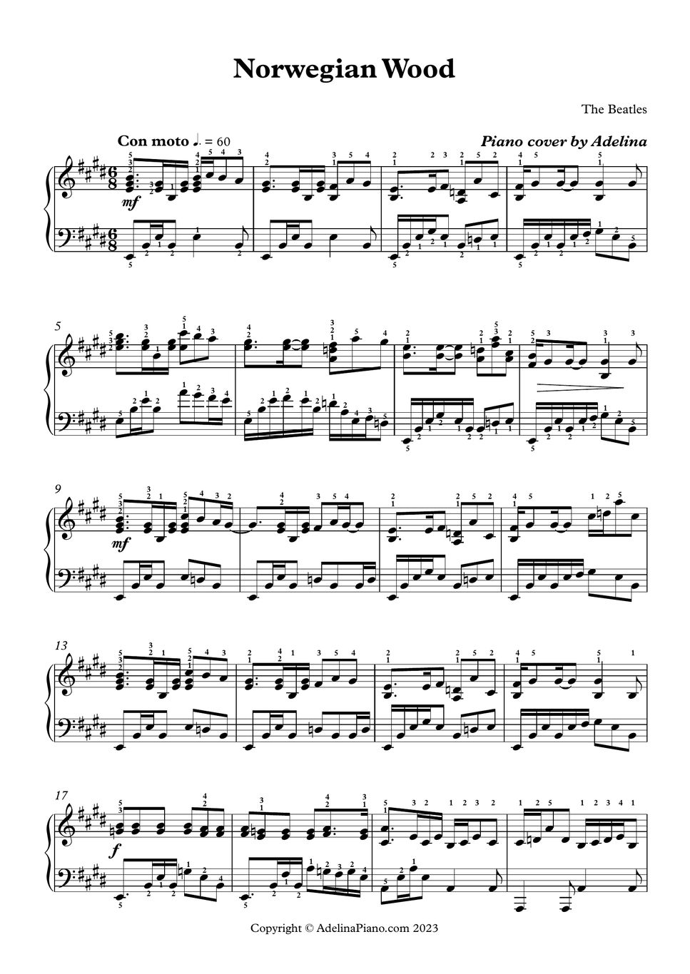 The Beatles Norwegian Wood Sheets by Adelina Piano