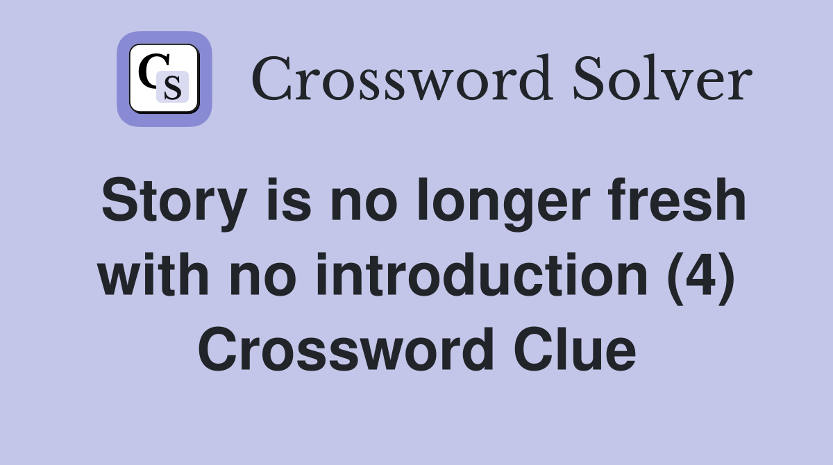 Story is no longer fresh with no introduction (4) Crossword Clue