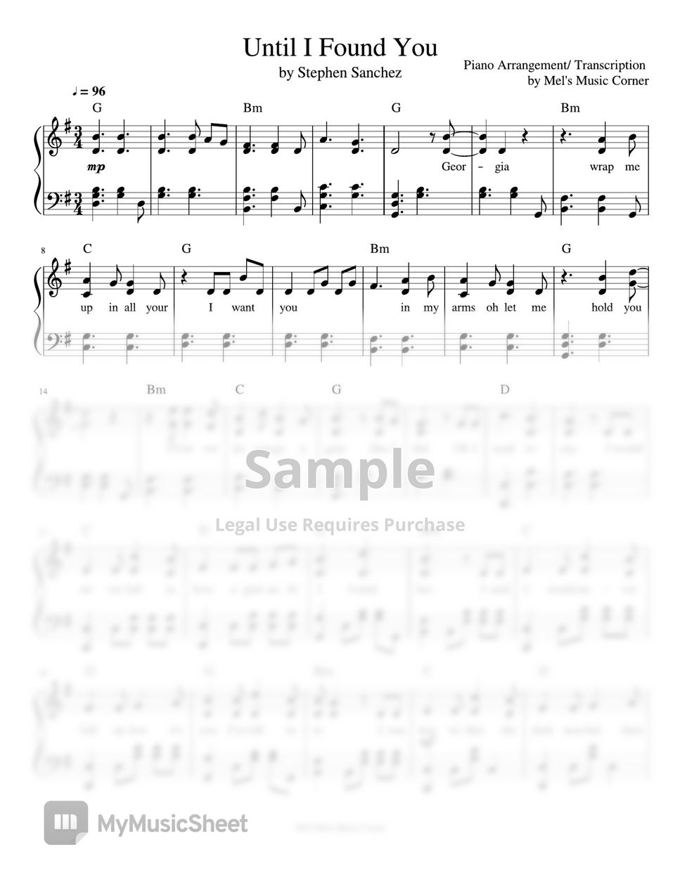 Stephen Sanchez Until I Found You (piano sheet music) Hoja by Mel