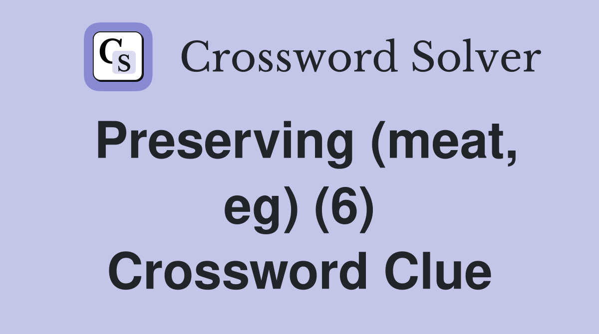 Preserving (meat, eg) (6) Crossword Clue Answers Crossword Solver